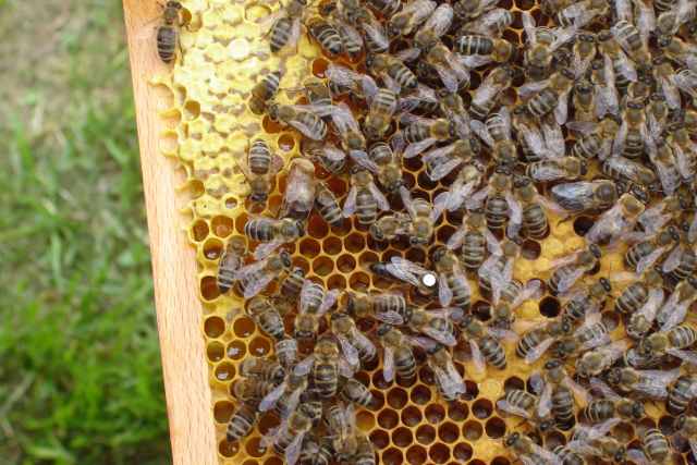 Zuerst zeigte er uns Drohnen. So werden die Bienenmännchen genannt. Sie haben keine andere Aufgabe als die Königin zu befruchten. Die Königin wird nur einmal befruchtet und kann dann ein Leben lang Eier legen. Sie legt bis zu 2000 Eier an einem Tag!