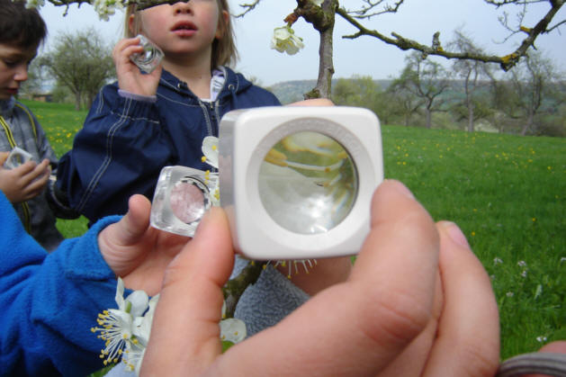 Manche Kinder betrachten auch Pflanzen ganz genau und sind überrascht, wie viele Besonderheiten mit einer Lupe zu entdecken sind.
